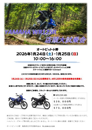 1/24(土)・1/25(日) 2日間限定 WR125R発売前店頭試乗会!